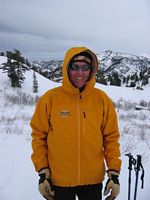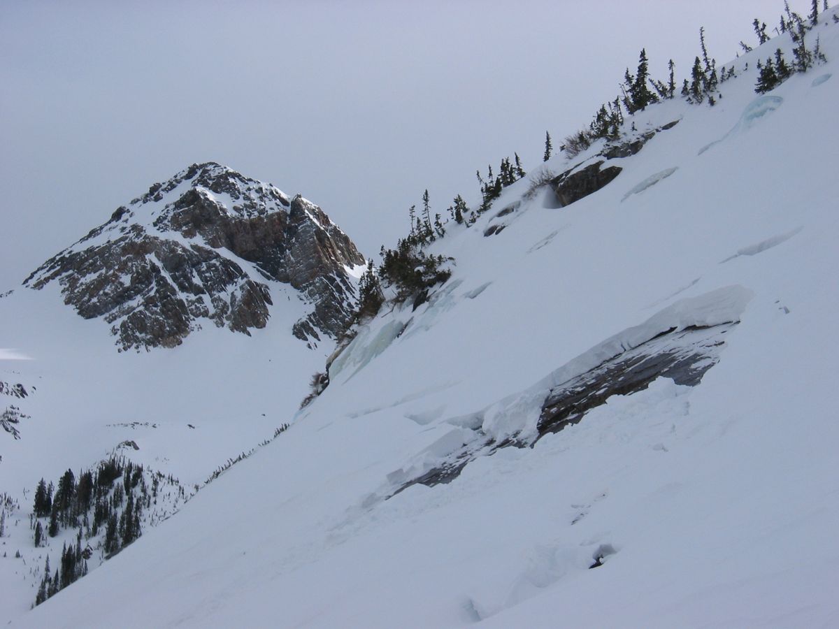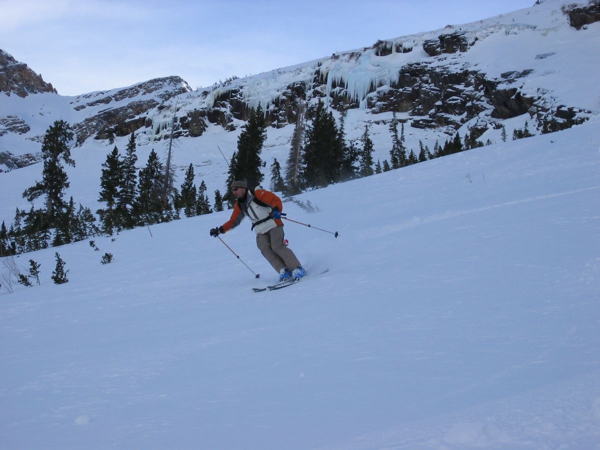 Backcountry with JH, Mark, Lino - note Mark's blow-up (no, not an avalanche, just Mark head-first into the hill)
