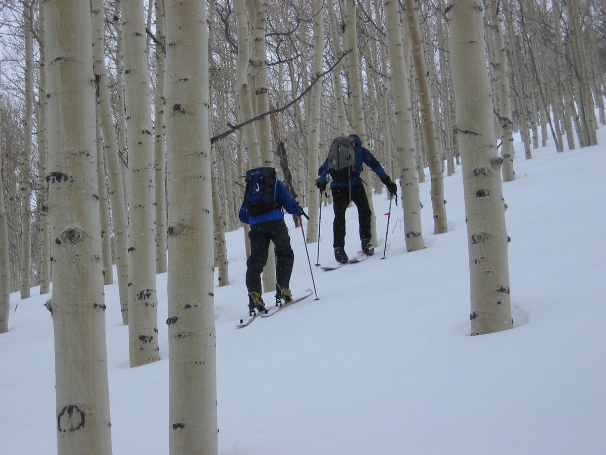 Sue & Eric climbing in the back-country (Willows)