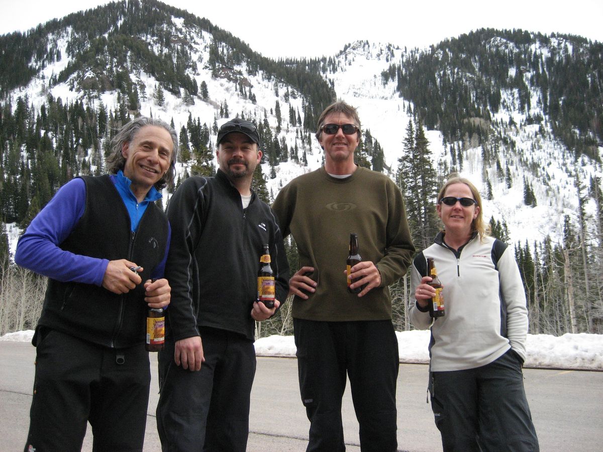 Tom, Sue, JM, Steve, spring skiing at Snowbird