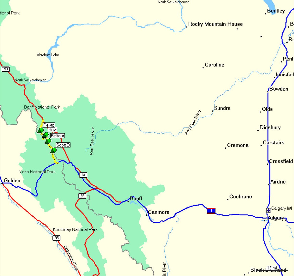 We undertook this classic ski mountaineering tour of the Wapta icefields in the Canadian Rockies spring 2008, starting at Peyto Lake in the north and traversing the Peyto glacier, Bow glacier, Vulture glacier, and Balfour glacier, finally exiting in the south at the Trans-Canada highway. The group was made up of John, Tom, Lino, Mark, Robin, and Steve. We took a couple extra days to play and explore, making seven days and six nights in total for a great backcountry ski experience. Route descriptions, GPS waypoints, etc., can be found under Routes and Descriptions.