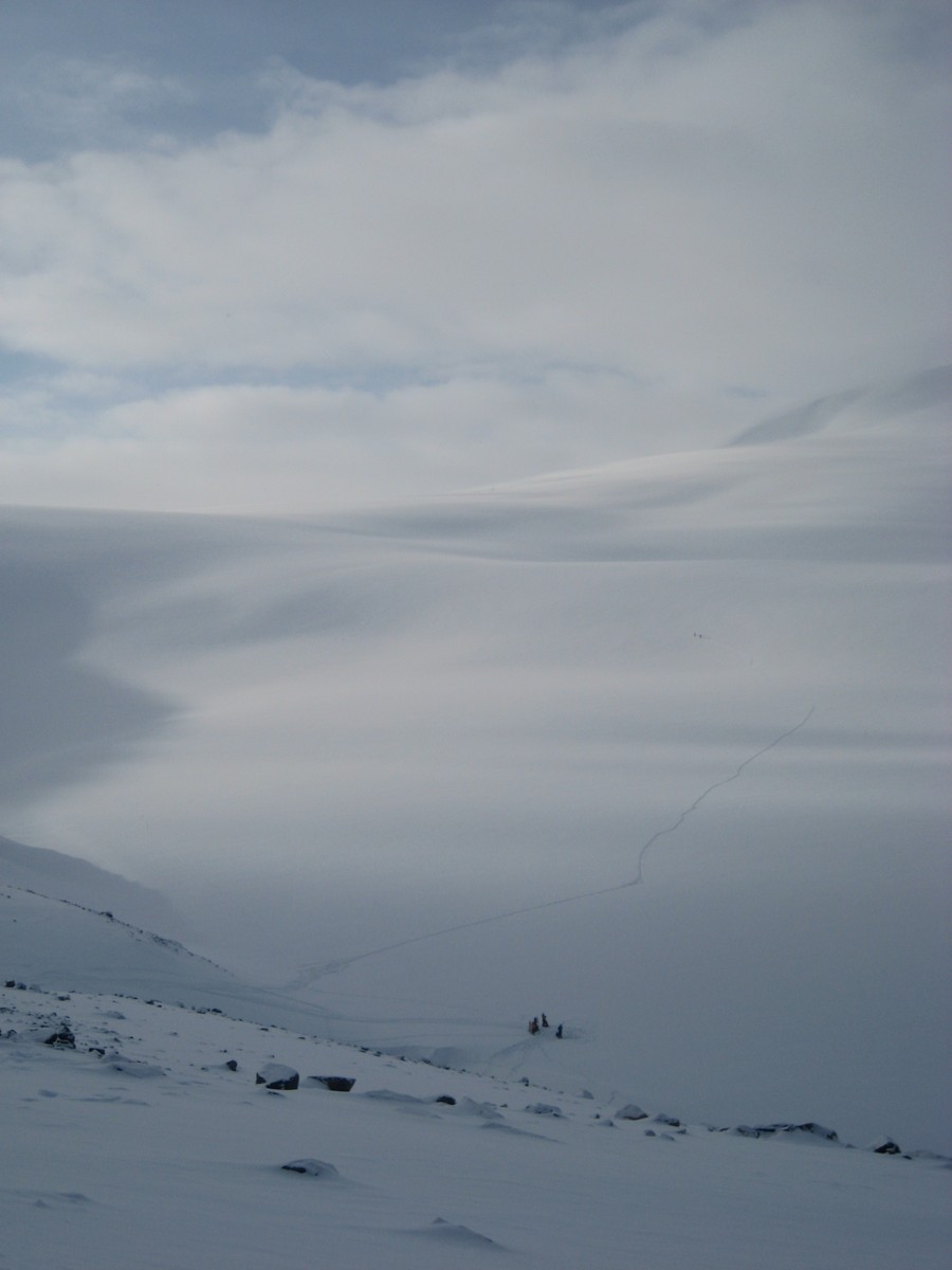In the third picture note the prominent rib on the left to access the moraine for safer avy route