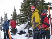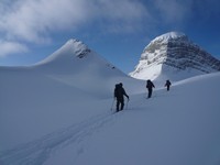 Day 2 - Saturday 15th - Tom, Steve, Mark travel Peyto to Bow hut; John, Lino, Robin climb up to Bow hut; Tom and Mark climb St. Nicholas with Chris