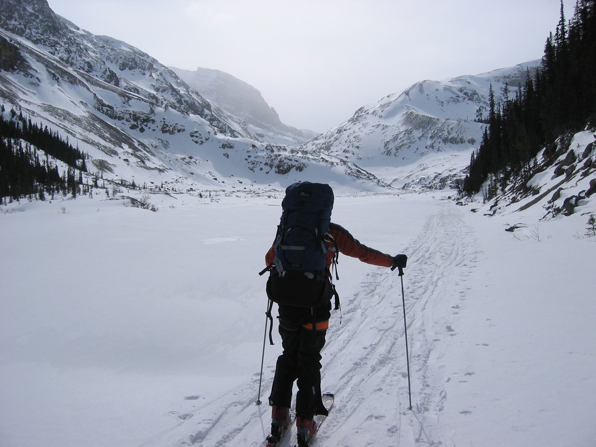Once we got to the flats above Sherbrooke Lake it was just a plod. I ended up putting on skins for the most of the flat across the lake and down the creek until the final km or two, which was a bit of a slick luge run.